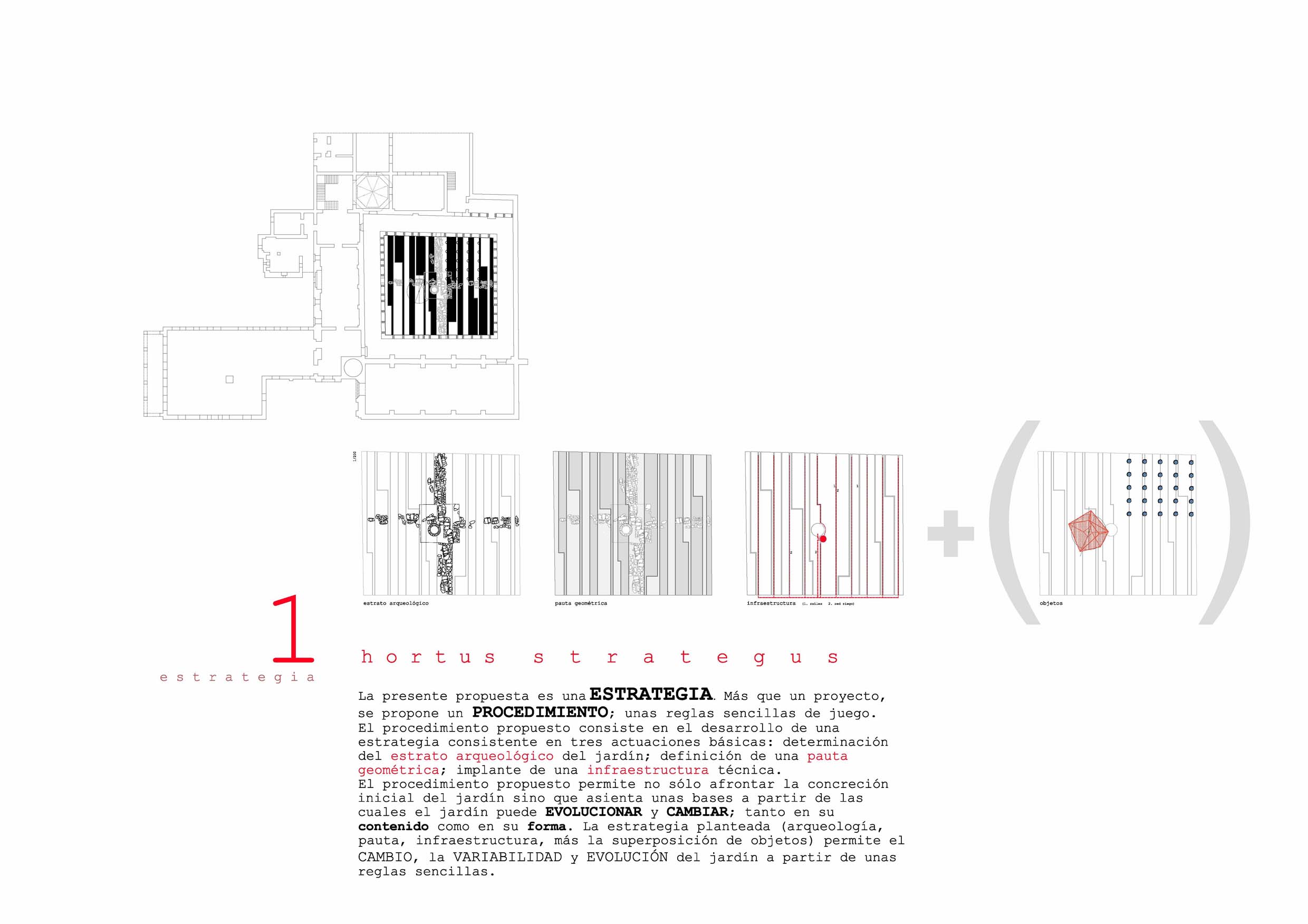 La proposta per al claustre del convent de Sant Francesc de Lugo parteix de la determinació d’unes pautes que suposen una intervenció mínima però que permeten afrontar la seva concreció i evolució. L’actuació es limita a la disposició d’uns carrils que defineixen franges paral·leles que, per una banda, delimiten els espais de plantació i, per l’altra, fixen el marc per a la col·locació lliure d’objectes diversos i canviants.