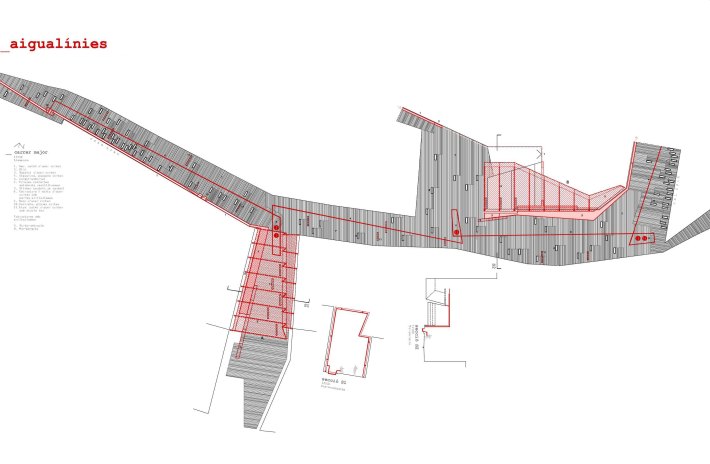 El traçat dels recs proposats s’acaben en punts singulars del teixit urbà on el caixó metàl·lic dels recs es desplega formant un bassiol i unes estructures metàl·liques reixades, per al desenvolupament de plantes enfiladisses, que adopten diferents formes i funcions: porta-umbracle, mur-pèrgola i barana-mirador.