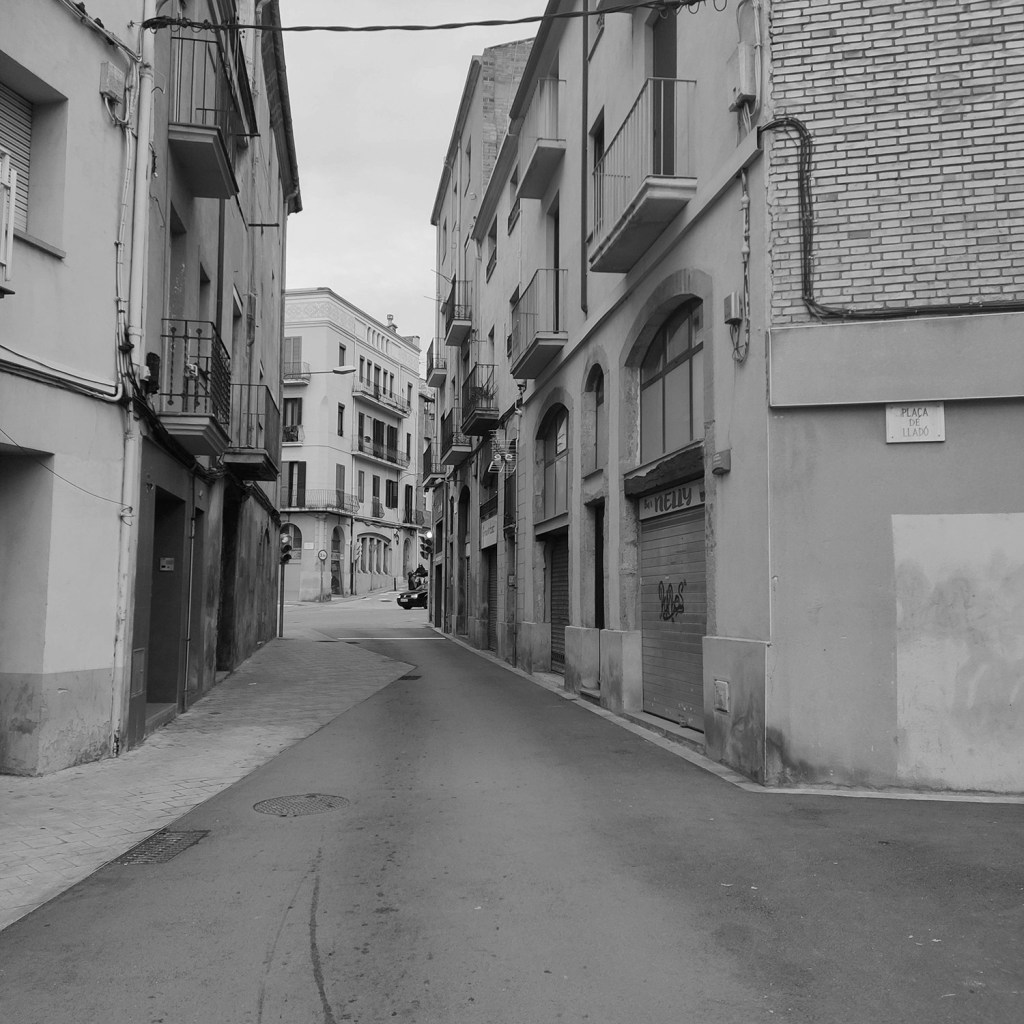 El carrer Lladó és un carrer d’una amplada ínfima amb una doble funcionalitat. Les característiques de la seva urbanització -amb voreres d’una amplada ben minsa- feien inviable recorreguts de vianants mínimament còmodes. La proposta parteix d’establir el carrer com a plataforma única amb el cost més baix possible, la qual cosa comporta la utilització de materials estàndards: peces de formigó, asfalt, panot, pilones de fundició i pintura.